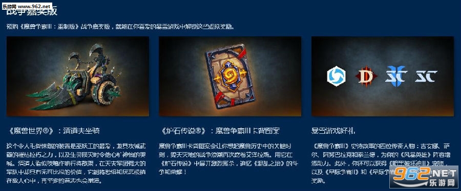 根据商城信息,《魔兽争霸3:重制版》本次推出了两种版本,畅玩版售价168元,战争嘉奖版售价258元。预购“战争嘉奖版”,玩家们可以在自己喜爱的暴雪游戏中解锁多样虚拟奖励。