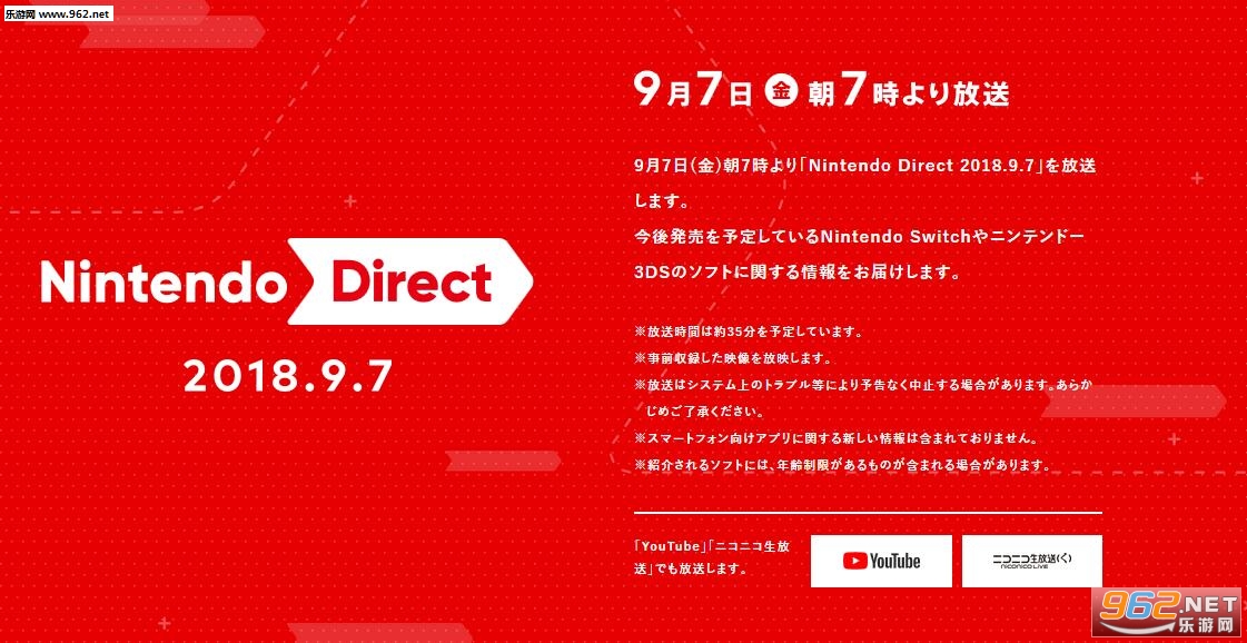 和之前泄露的完全一致,任天堂昨天晚上在官方网站上正式确定了9月首次网络直面会的时间安排。该公司将于北京时间2018年9月7日早6点整举行直面会。