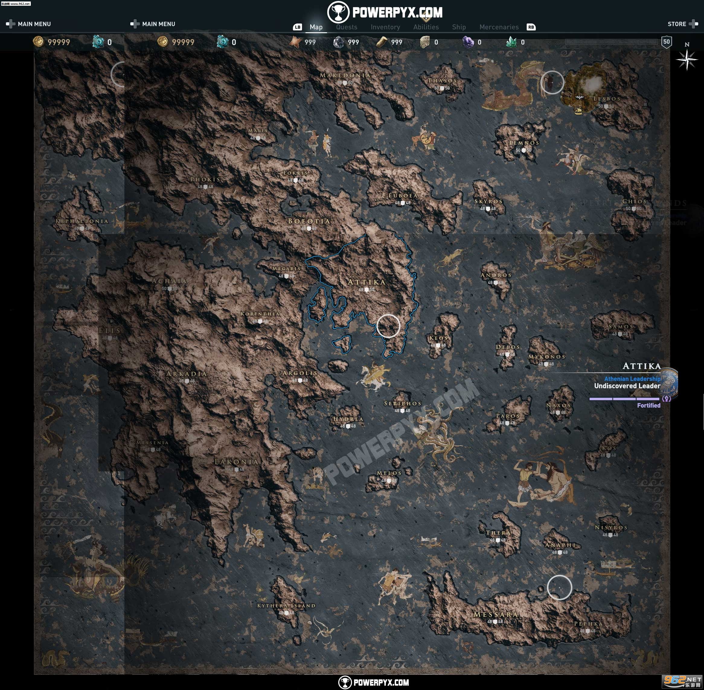 以下是《刺客信条:奥德赛》的全区域地名列表: