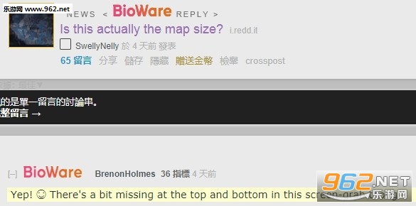 BioWare的员工Brenon Holmes在Reddit论坛上就被玩家问到了这个问题,而他则爽快肯定了这一猜测,“是的,(笑脸)虽然这张截图显示的区域在顶部和底部还略有缺失。”所以基本上,游戏里玩家们应该就是在这一大片区域里游玩了。