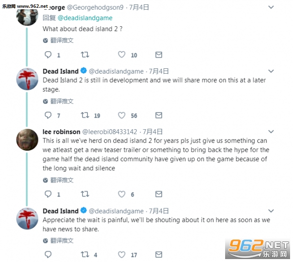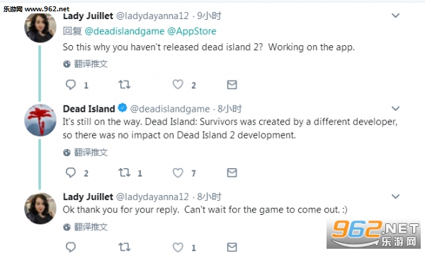 有粉丝询问:“所以这个手游就是你们不发售《死亡岛2》的原因?”语气明显带着责怪和不解。而《死亡岛》官推则回复:“《死亡岛2》仍在制作。两者由不同的开发团队制作,所以这款手游并不会对《死亡岛2》的开发造成影响。”