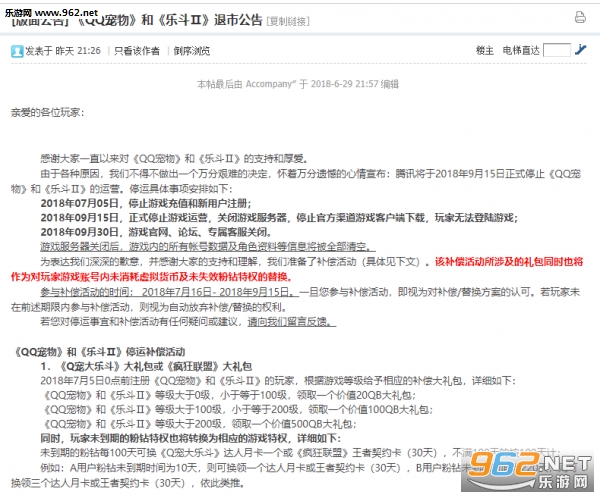 由于各种原因,我们不得不做出一个万分艰难的决定,怀着万分遗憾的心情宣布:腾讯将于2018年9月15日正式停止《QQ宠物》和《乐斗Ⅱ》的运营。停运具体事项安排如下: