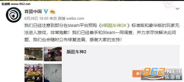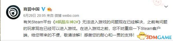 育碧官方微博也发布了声明: