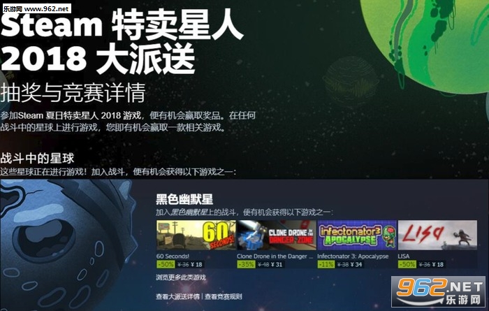 这次特卖活动的主题是“星际”,出来针对涉及该类型的游戏进行大力度折扣之外,玩家还可以在Steam页面游玩一个叫“特卖星人”的育成网页游戏,玩家可以通过这个网页游戏中的塔防小游戏来得到免费游戏。并且玩家可以通过浏览游戏列表获得集换卡牌,每天限量三张。