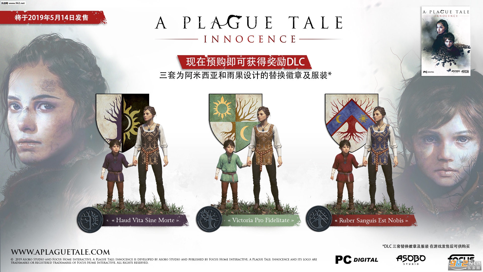 《瘟疫传说:无罪》将于5月15日发售,支持中文。游戏已在Steam上开启预售,预购即可获得奖励DLC,包含姐弟两人的三套替换徽章和服装。