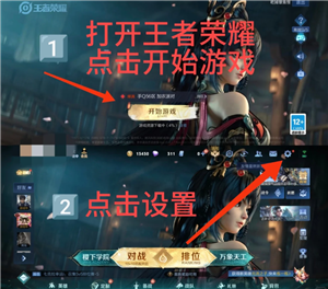 2. 打开王者荣耀:进入游戏点右上角设置图标。