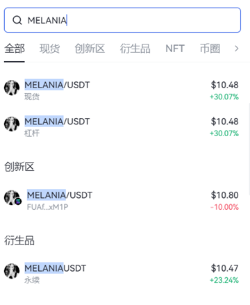 第二步:搜索要交易的币种MELANIA的英文简称